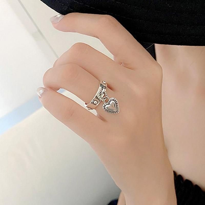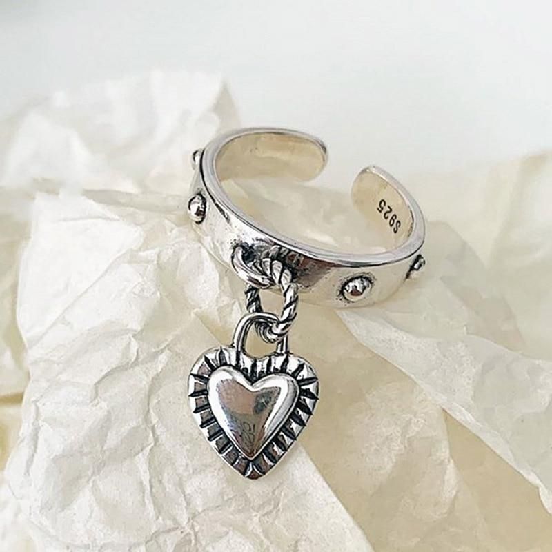 Buy Foxanry Stamp LOVE Heart Tassel Rings for Women Couples New Fashion Vintage Thai Silver Punk Party Jewelry Gifts in Nigeria