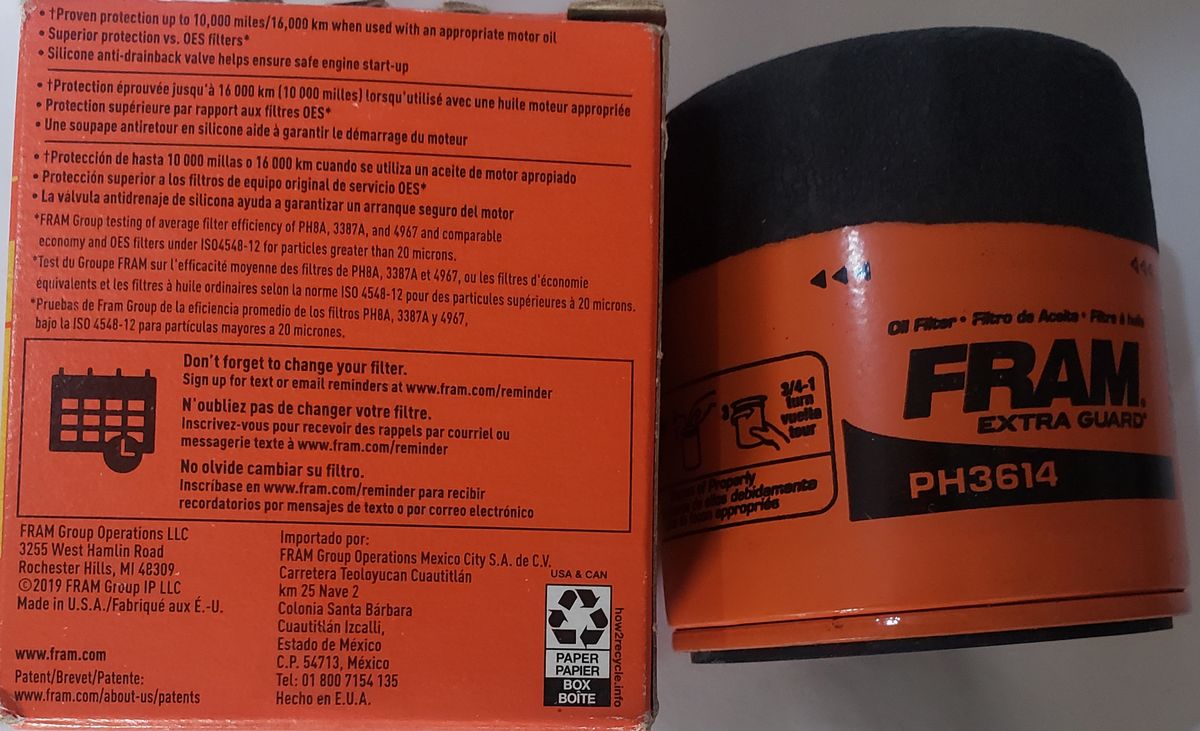 With 10,000 miles of protection, Extra Guard is the perfect filter for everyday drivers who perform oil changes at OE recommended intervals. Extra Guard has cellulose and glass blended media that provides advanced engine protection for your vehicle. Engineered with a silicone anti-drain back valve, Extra Guard meets all manufacturer's recommended change intervals. FRAM Extra Guard provides the perfect balance of dirt-trapping efficiency and dirt-holding capacity.