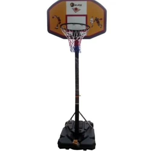 New movable basketball with strong steel post with roller tires. It comes with components like board, ring and net. Suitable for both indoors and outdoor use, home use, schools, sport centres, recreational centers Size:109*70*3cm Rim board materials:PE Petented Crank Base size:110*76*21cm It can be filled with 100kg water or 150kg sand It is movable Strong Rim adjustment Backborad