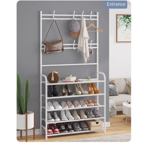 Double Poles:The clothes stand is with 2 hanging rails, one is 130cm height, another one is 155cm height, can meet the needs of different length clothes.With the bottom storage shelf, makes this clothing hanger more sturdy and provide more space for storage boxes, folded clothes, shoes or other things as you want.