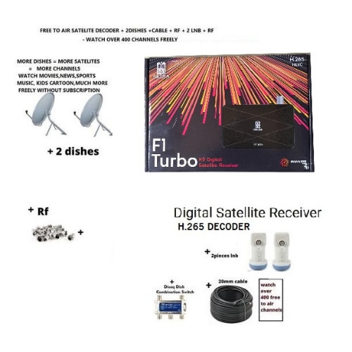 Buy Free To Air Satellite H265 Decoder Mini Hd Reciever Inbuilt Wifi With 2 Dishes in Nigeria