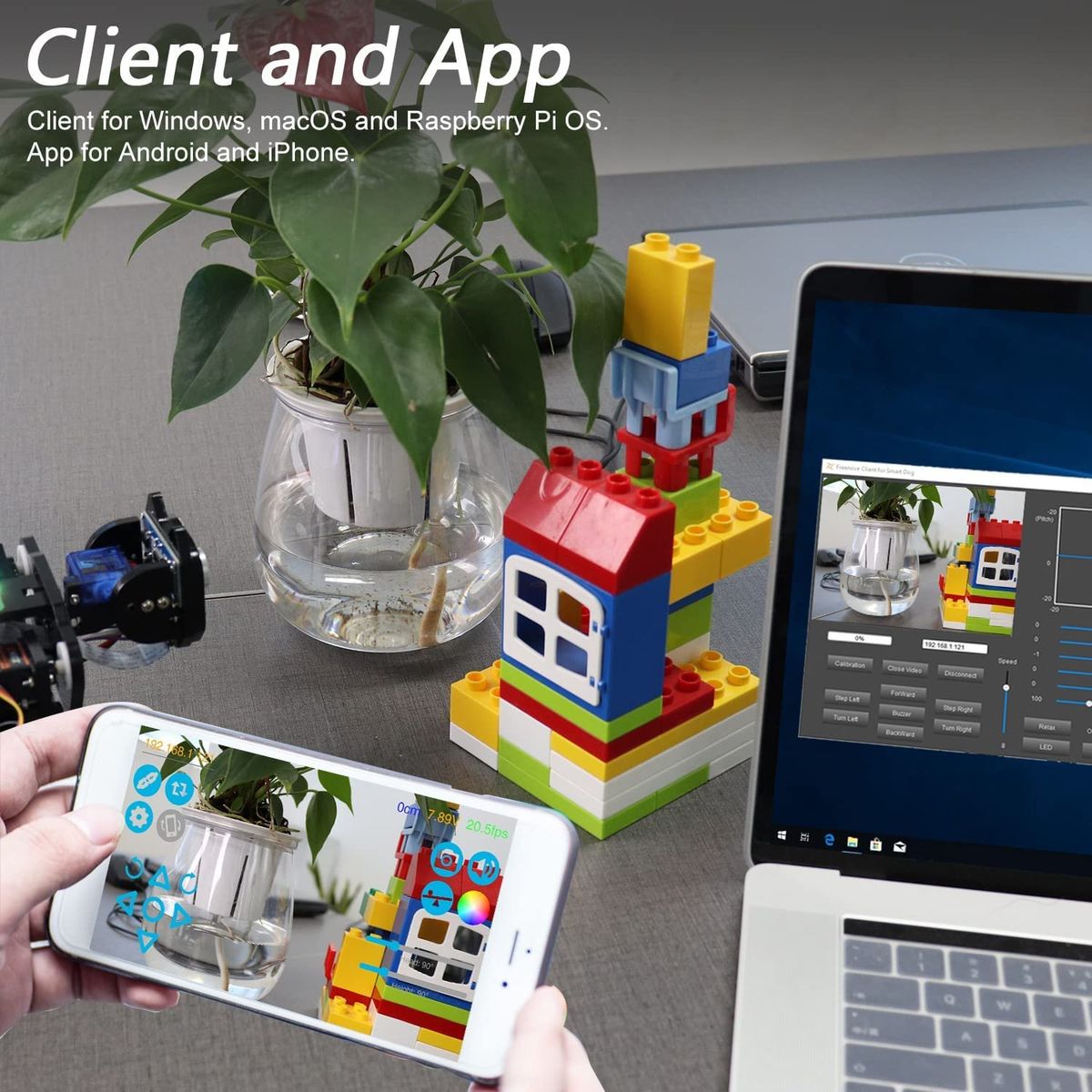 - Control methods -> Controlled wirelessly by your Android phone or tablet, iPhone and computer (run Windows, macOS or Raspberry Pi OS).