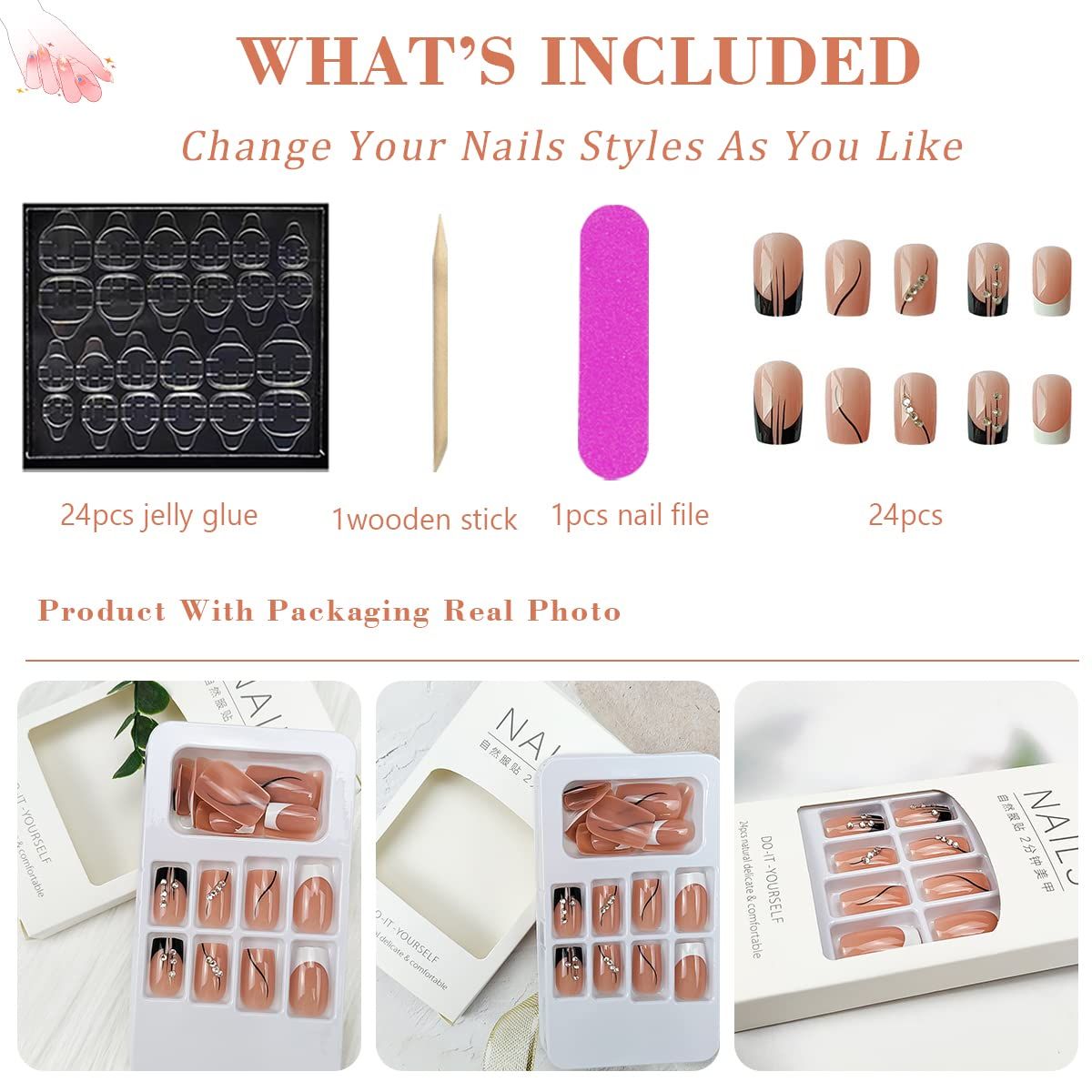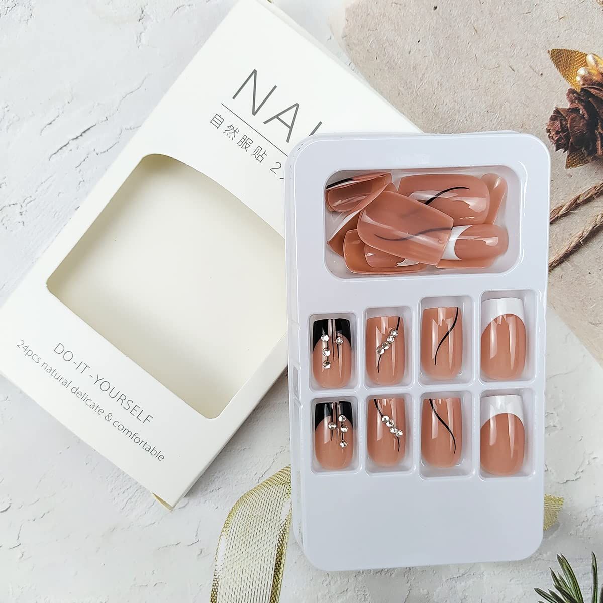 Buy French Press On Nails Medium Square Fake Nails 24Pcs in Nigeria