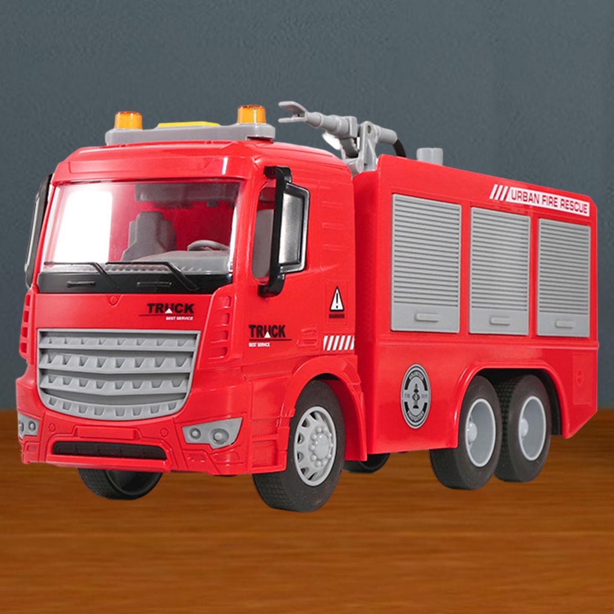 Fire engine truck, The great gift for boy and girl! Just 's wheelings forward, then watch the car accelerate across the floor. A fire truck toy will come with a lot of joy and surprise to the children!