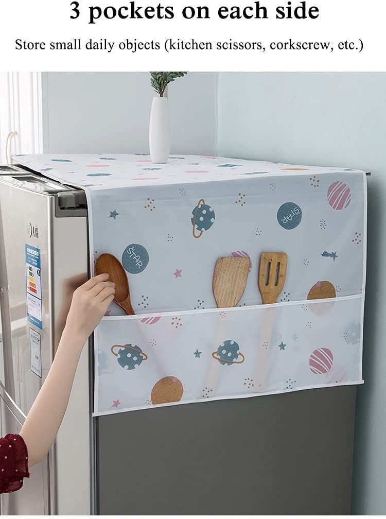 the double layer PEVA material which is environment protextivethe product is water proof ,and moisture proof,solation of dust, keeping the fridge from dust,very easy to match with your furniture, perfect home decoration for all the seasons.large enough to be used on the refrigerator.