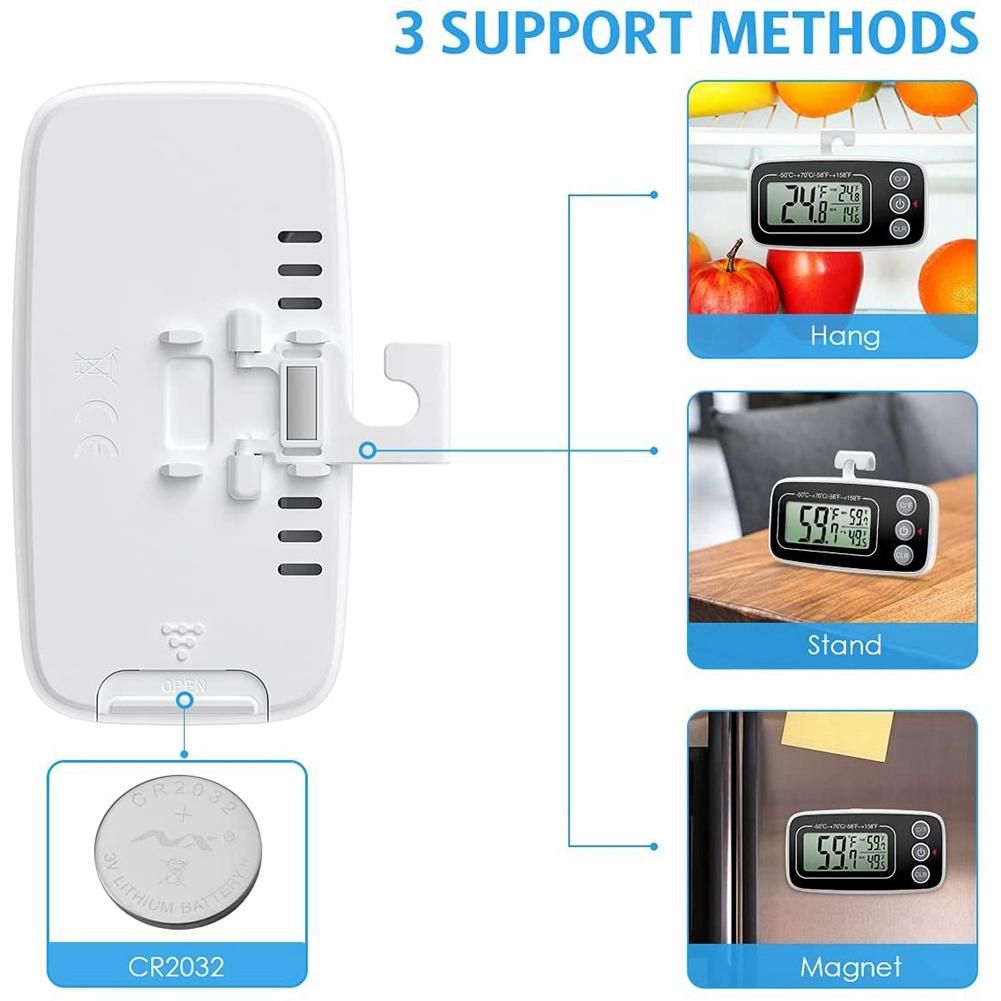 [3 Support Methods & Portable]Multi-Choices placing the fridge temperature thermometer. Either stick it to the fridge door with the rear magnet, use the stand to p it on the table-top, or you also can flip the stand over and use the hook to hang it on a refrigerator shelf or your freezer. Mini and portable design makes it prefect for your fridge, and won't take too much ps.