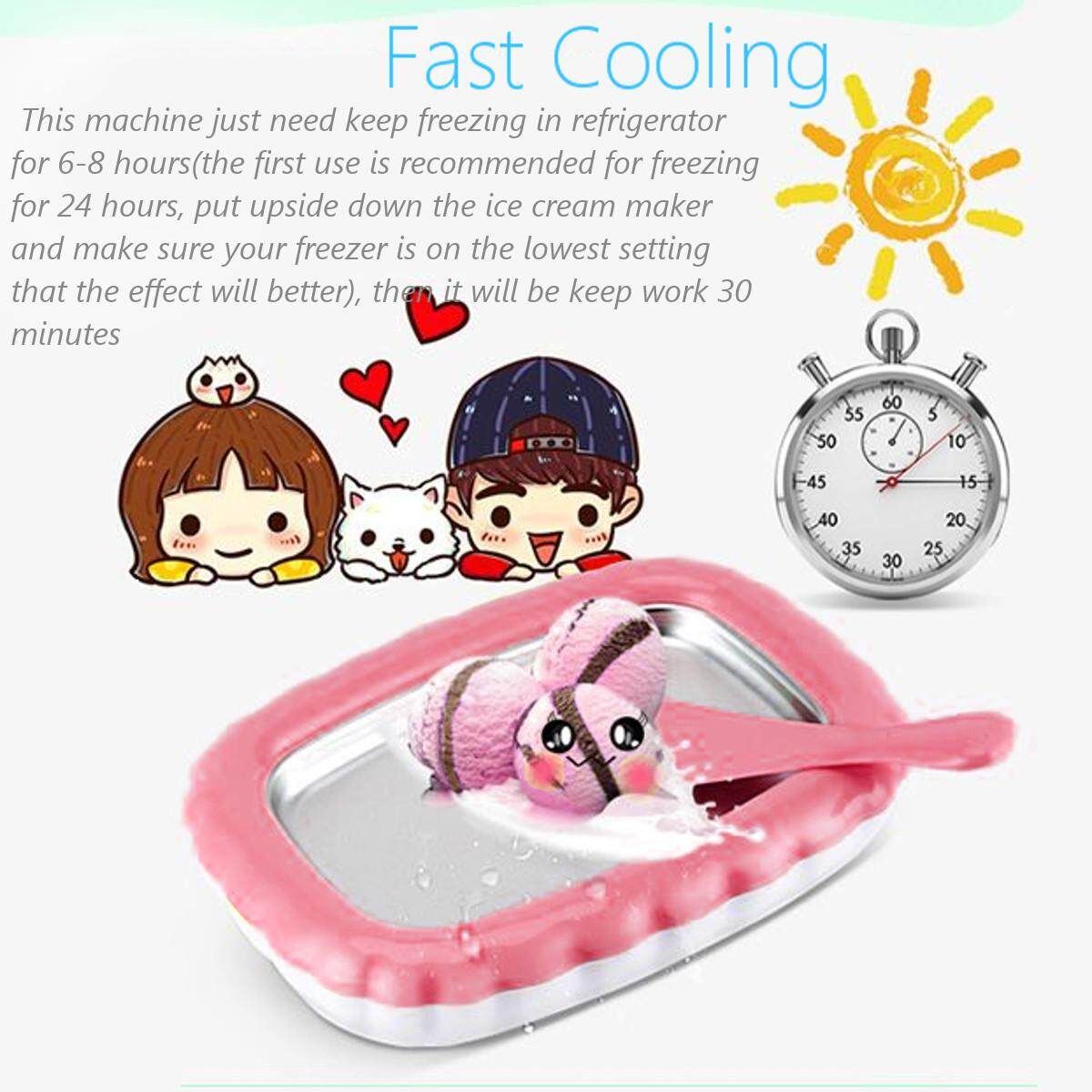 ? SAFE AND HEALTHY: Alloy aluminum plate combined with the frozen , PES cold storage pool, ensure health and safety. The shell and scoops made of environmental protection ABS material, non-slip bottom design, not easy to slide when stirring.