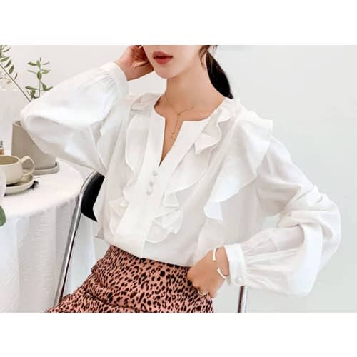 Buy Frill Neck Blouse- White in Nigeria