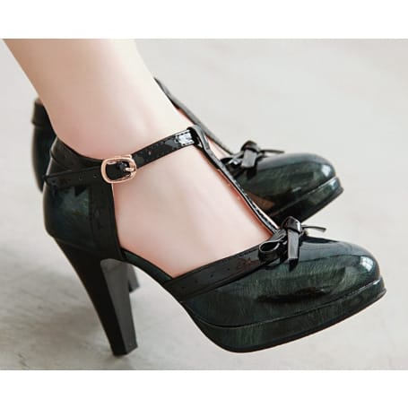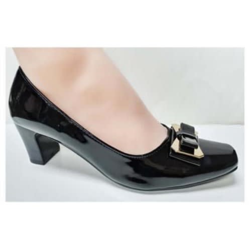 The shoe has a top accessories designed with a conination of patent leather and Pearl