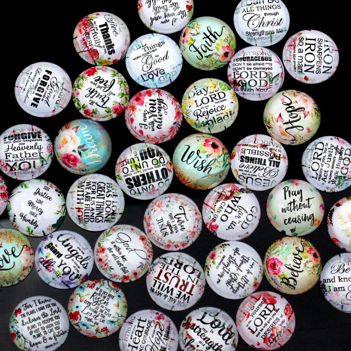Buy From 8mm to 30mm Random Mixed Round Bible Love Cabochons Pattern Glass Flatback Photo Base DIY Making Accessories Paired K06278 in Nigeria