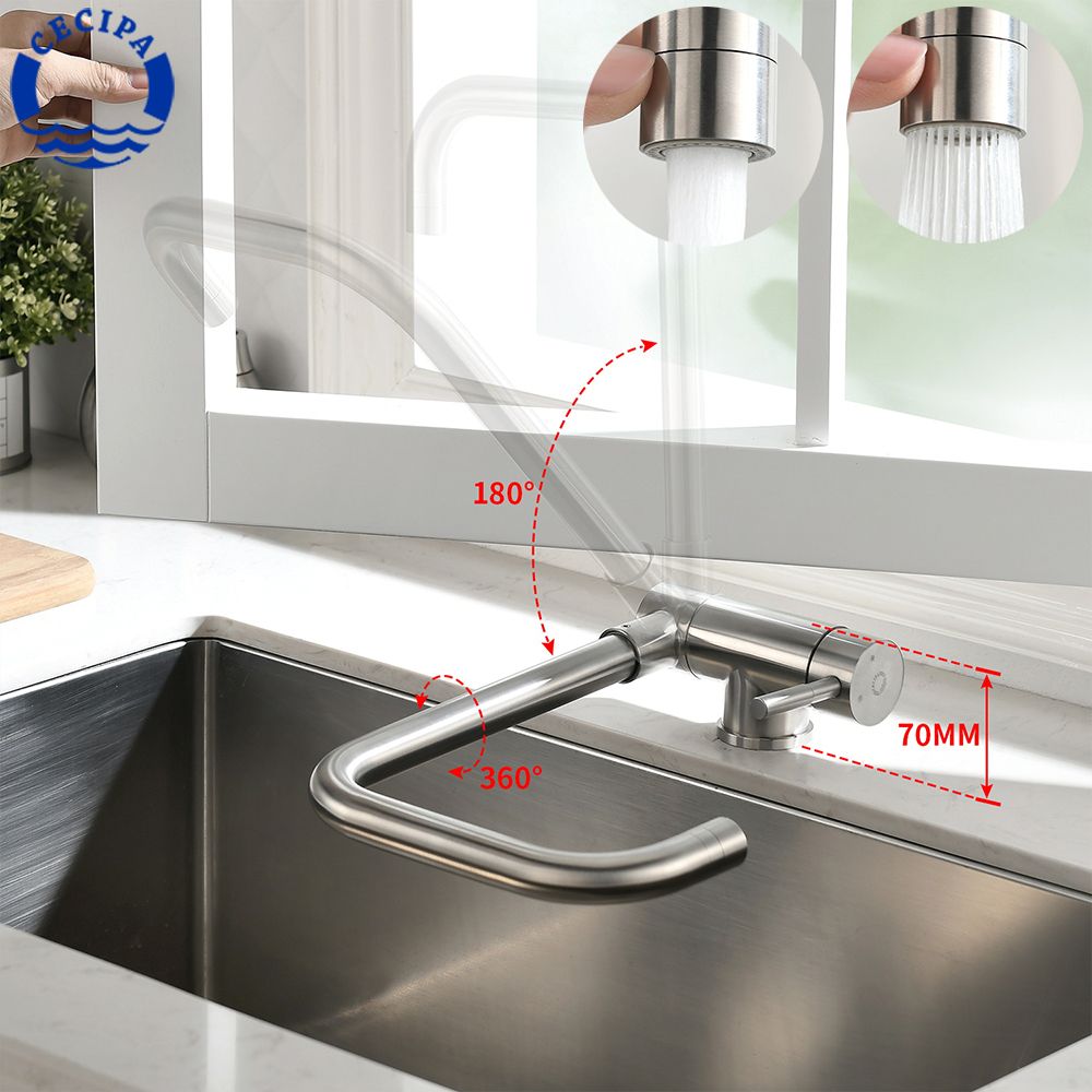 CECIPA Front Window Folding Kitchen Faucet Stainle Steel 360° Rotation Hot And Cold Mixer Tap For Kitchen Sink Wash Basin
