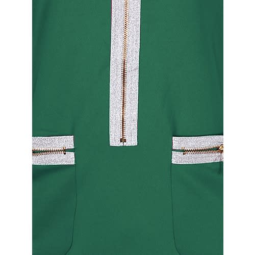 Short dress in thick jersey. Round neckline, concealed zipper at back of neck with hook-and-eye fastener, and gently tapered waist with flared skirt, 3/4-length raglan sleeves.