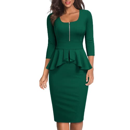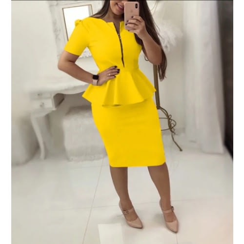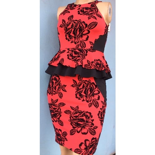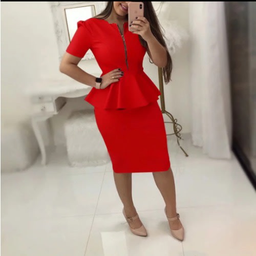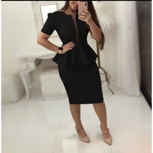 A beautiful midi peplum dress that can be worn anytime and for many occasions. It is comfortable,durable, and has a velvet and glitter effect that adds beauty to it.