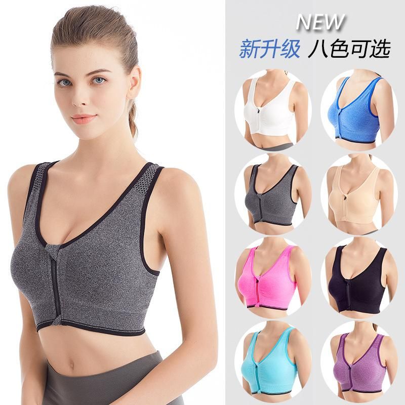 Buy Front zipper sports bra professional shockproof breathable no steel ring running vest yoga sports underwear women gray M in Nigeria