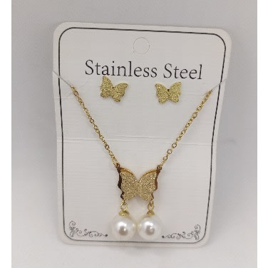 Buy Frosted Butterfly Pearl Pendant Necklace With Stud Earring Jewelry Set - Gold in Nigeria