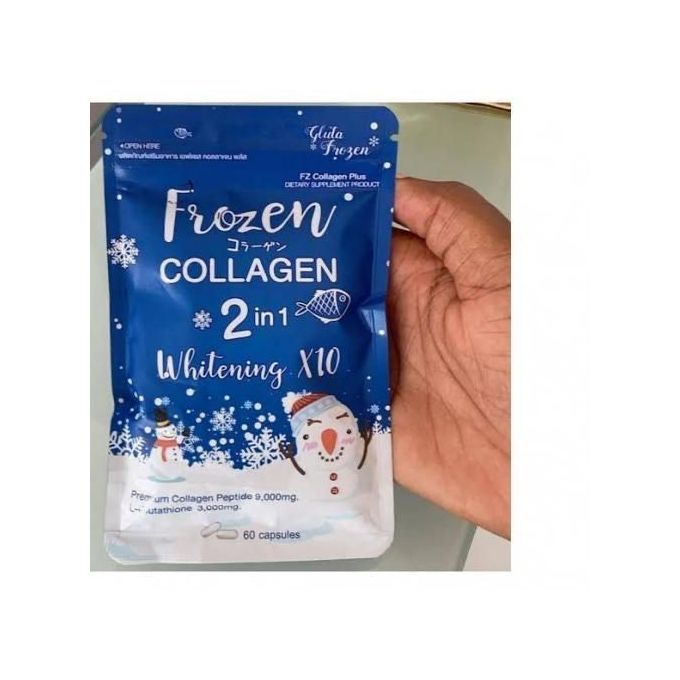 Frozen 2 in 1 Collagen Supplements for skin glowing which also reduce wrinkles, With the ultimate extract of 12 kinds of good ingredients, it's 10x glowing...* BENEFITS * * Reduce freckles, dark spots on the body and on the face. * It nourishes the nails, make hair stronger. You can actually see results in 14-30 days.* To help solve acne problems.* Nourishes the skin to look radiant While protecting the skin from the sun.