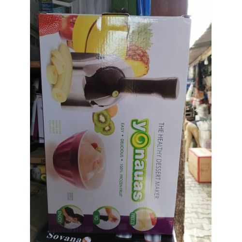 Yonanas turns frozen fruit and other flavorings into a delicious, healthy soft-serve treat. The unit combines frozen bananas and any additional fruit or chocolate and instantly churns the ingredients to produce a treat with the texture of frozen yogurt or soft-serve ice cream, but without the additional fat, sugar, or preservatives. The chute easily accepts berries, sliced mango, or cantaloupe along with frozen banana, and the integrated spinning blade mashes and incorporates the fruit into a silky-smooth confection with the texture of soft-serve ice cream or yogurt. The chute, plunger, and blade are dishwasher safe.