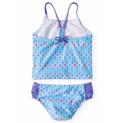 Your little mermaid will love going to the beach or the pool in the comfort of this officially licensed Frozen Tankini. It is designed with a meshing lining so she gets cool and dry faster, while the Elsa graphic will make her the coolest kid no matter where the day takes her. This swimsuit is also made with a hint of spandex for long-lasting comfort. Your little one will be reaching for this swimsuit again and again to look her best whether she's having fun in the sun or making a splash with friends and family.