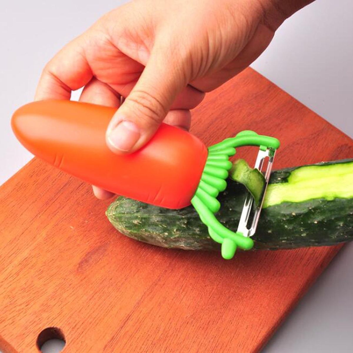 The vegetable peeler is made of stainless steel and PP material. And the carrot shape makes it look cute.