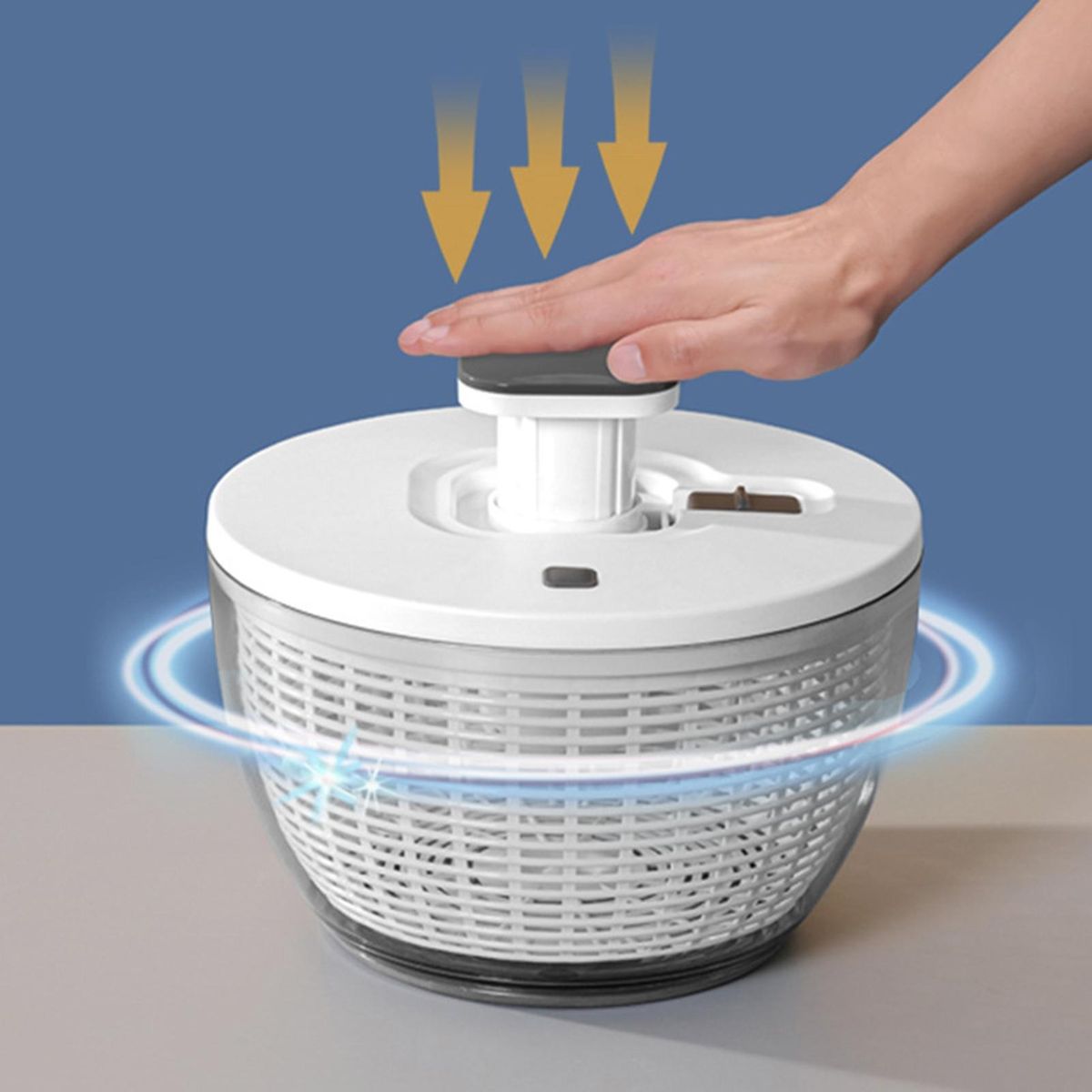 6L large capacity, can wash more vegetables and fruits, easy to use, can be operated with one hand, can be easily rotated by pressing, can keep your lettuce free of excess water in a few seconds, and can be added to the salad at any time.