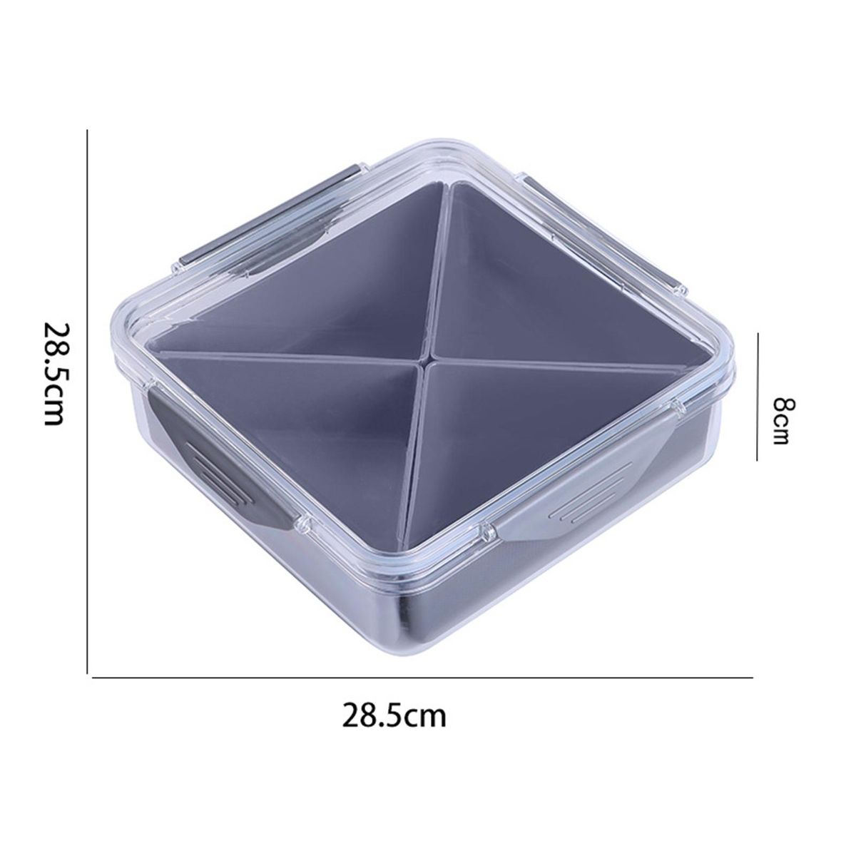 This divided serving tray is perfect for any occasion. use it at parties to store prepped ingredients or cut up fruit and veggies for effortless snacking. the clear airtight lid ensures freshness, while the double seal, 4-sided lock, and sealing rubber ring provide excellent leak-proof protection.