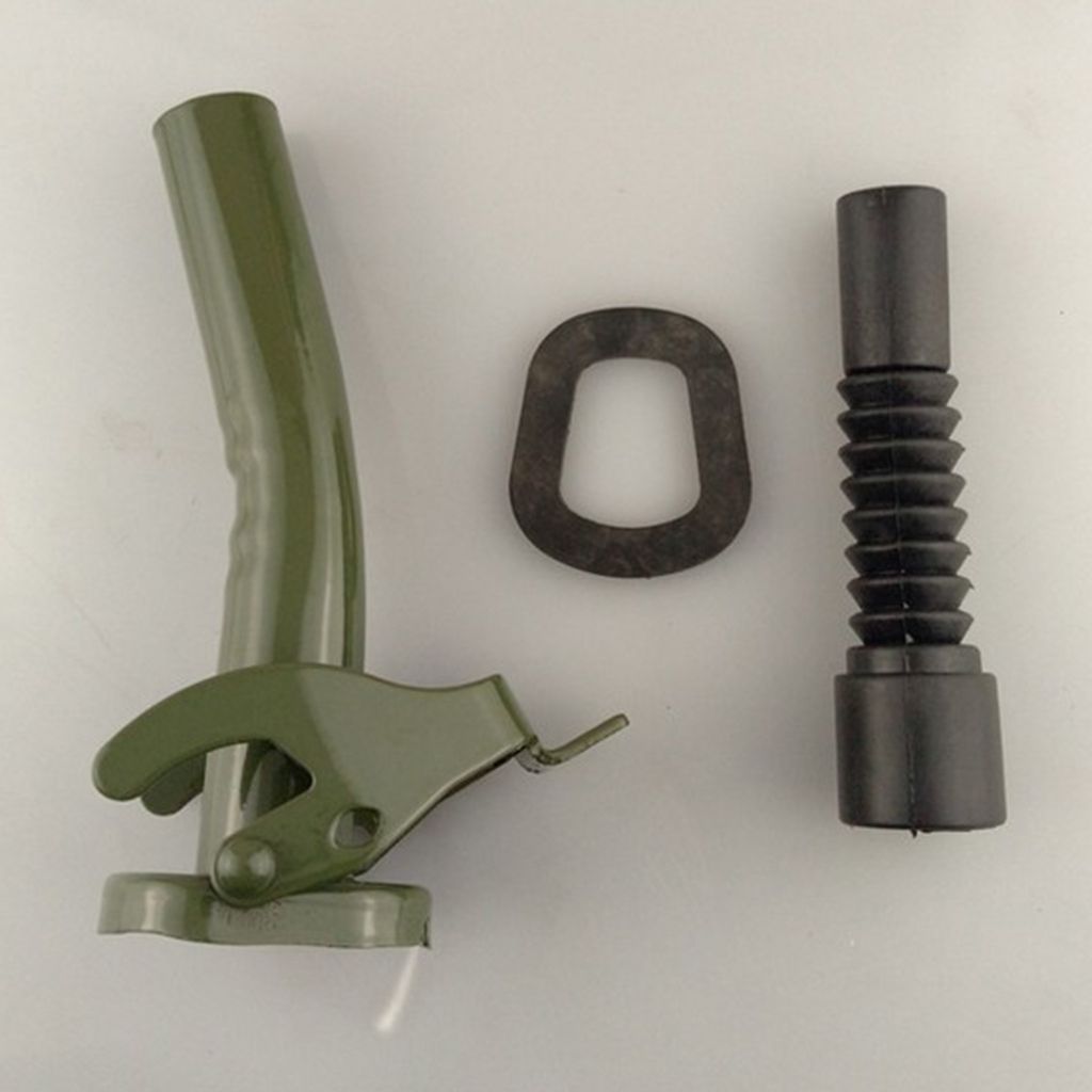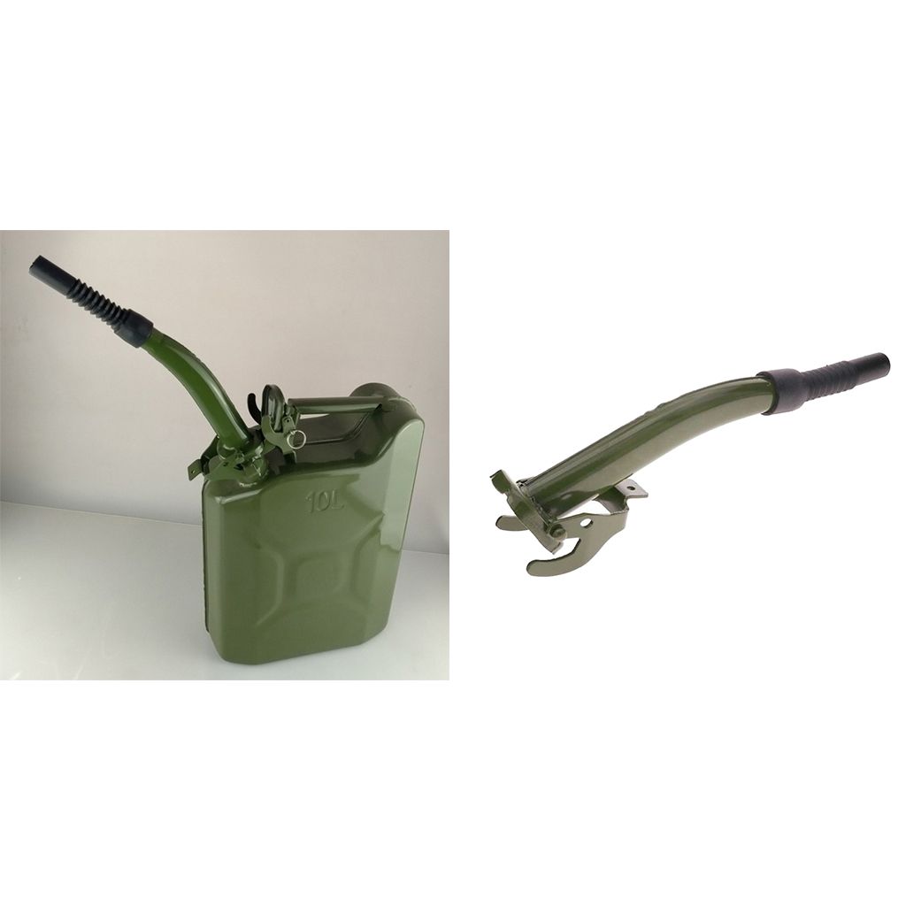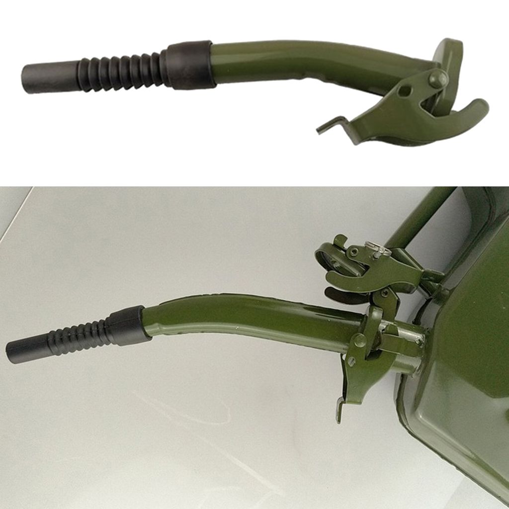 Heavy duty carbon steel construction with flexible plastic nozzles, can withstand any angle of tipping.Rubber seal gasket to ensure a leak free operation.Premium quality steel spout, easily to clips on to your jerry can.Suitable for 5 litre, 10 litre and 20 litre jerry cans.Rubber Nozzle Length: 12cm/ 4.72inch, Total Length: 38cm/ 15inch.