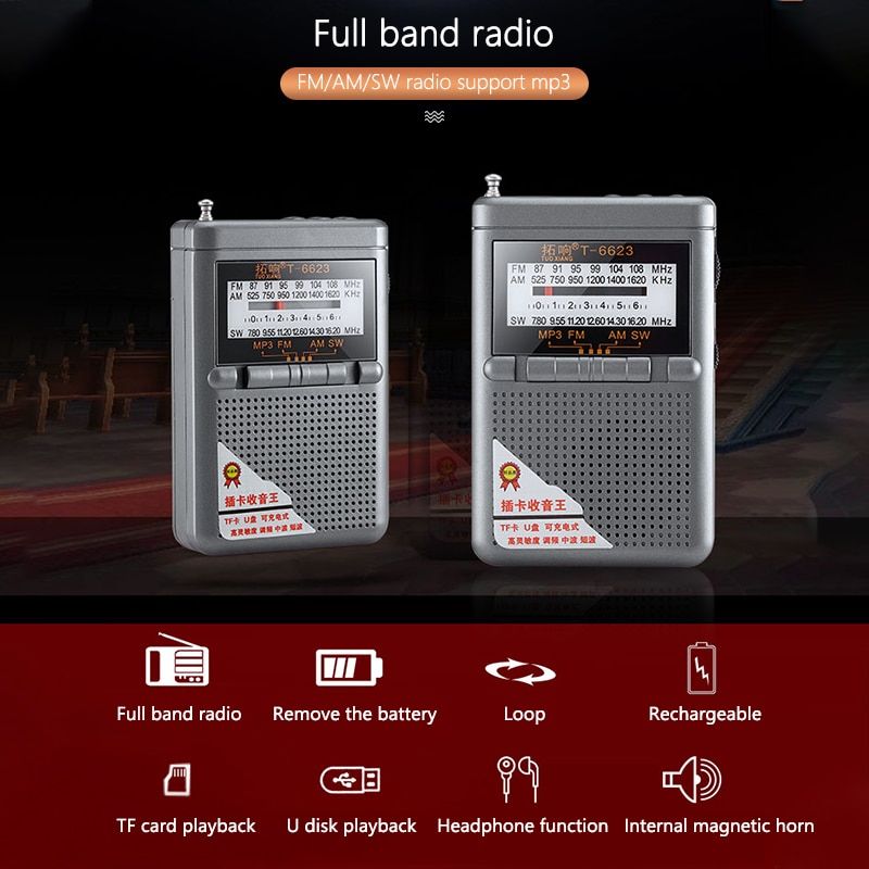 Full Band Radio FM AM SW Radio World Receiver with Display Speaker 88-108MHz Support TF Card Headphone Jack Mini Pocket Radio