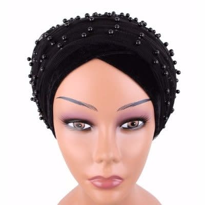 Buy Full Beaded Turban With Net - Black in Nigeria