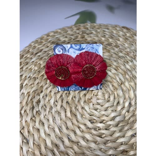 Buy Full Bloom Raffia Straw Statement Earrings - Wine in Nigeria