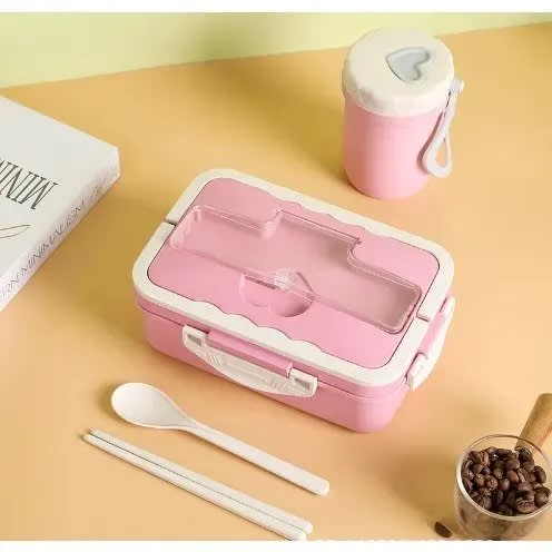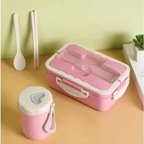 Buy Full Set Microwave Lunch Box With Spoon / Chopsticks And Cup - Pink in Nigeria