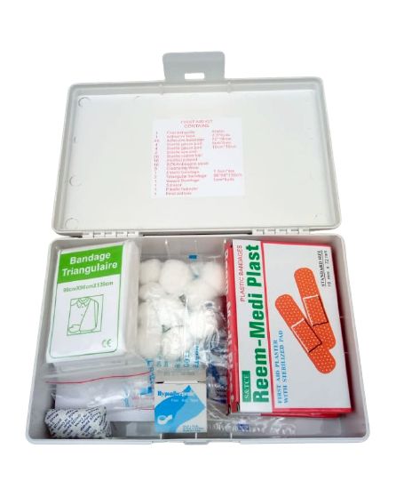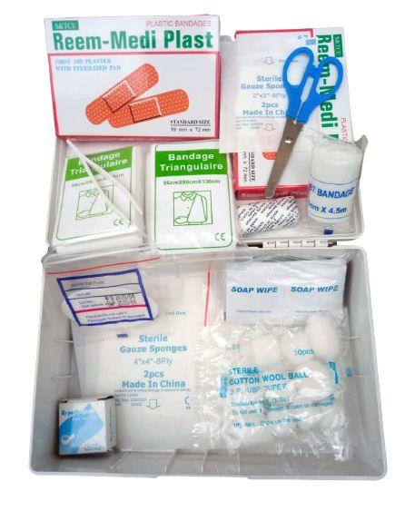 FULLY KITTED FIRST AID BOX FOR 25 PERSONS FOR CARS, HOMES & BUSINESS PLACES Our Medium box first aid kit comes with variety of products to fit urgent first aid needs. Perfect for auto, home and office use. The kit is roomy, durable, easy to carry and simple to open. Plastic box is ideal for storing art supplies for its light weight, large capacity and handles design