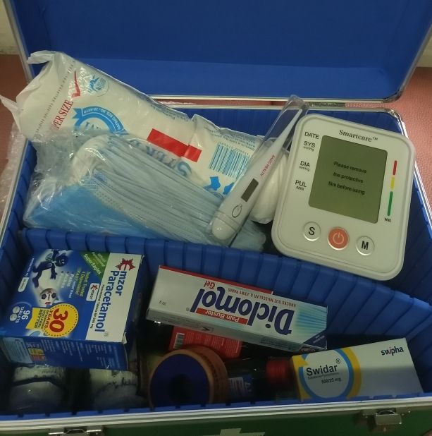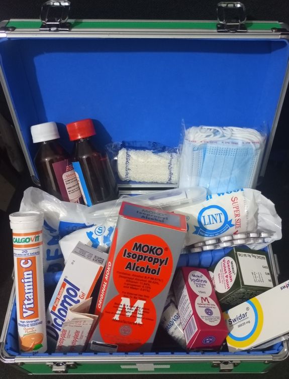 FIRST AID KIT SIZE: 26cm x 17cm x 9cm FIRST AID BOX CONTAINS: