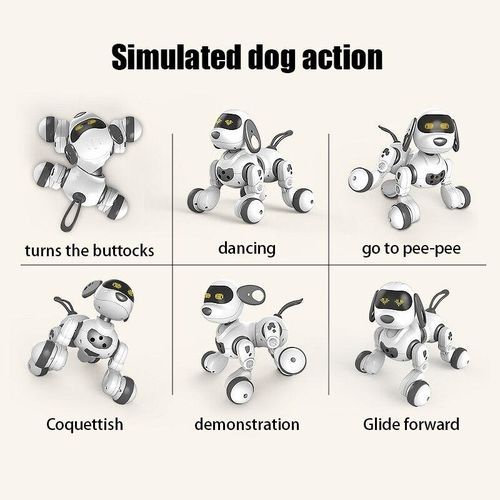 Say hello, sit down, and please perform stunts,Handstand rotation and flip action,Push-up exercises,Cute stunts,Smart touch sensor interactive funny dog mode,Intelligent marching follow,Simulate a smooth and changeable stunt music and dance combination.