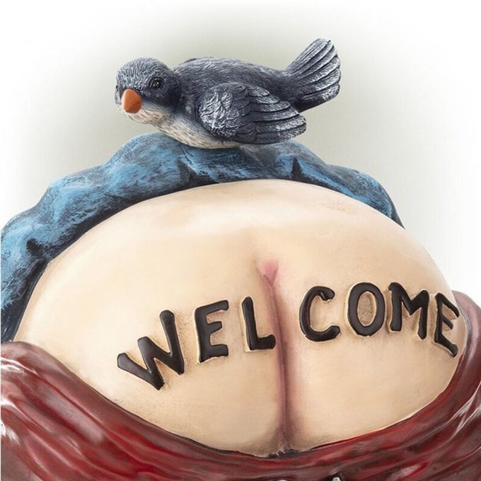 Funny Wel Ome Gnome With Bird Statue De Orative Dwarf Resin Doll Raft- Olorful