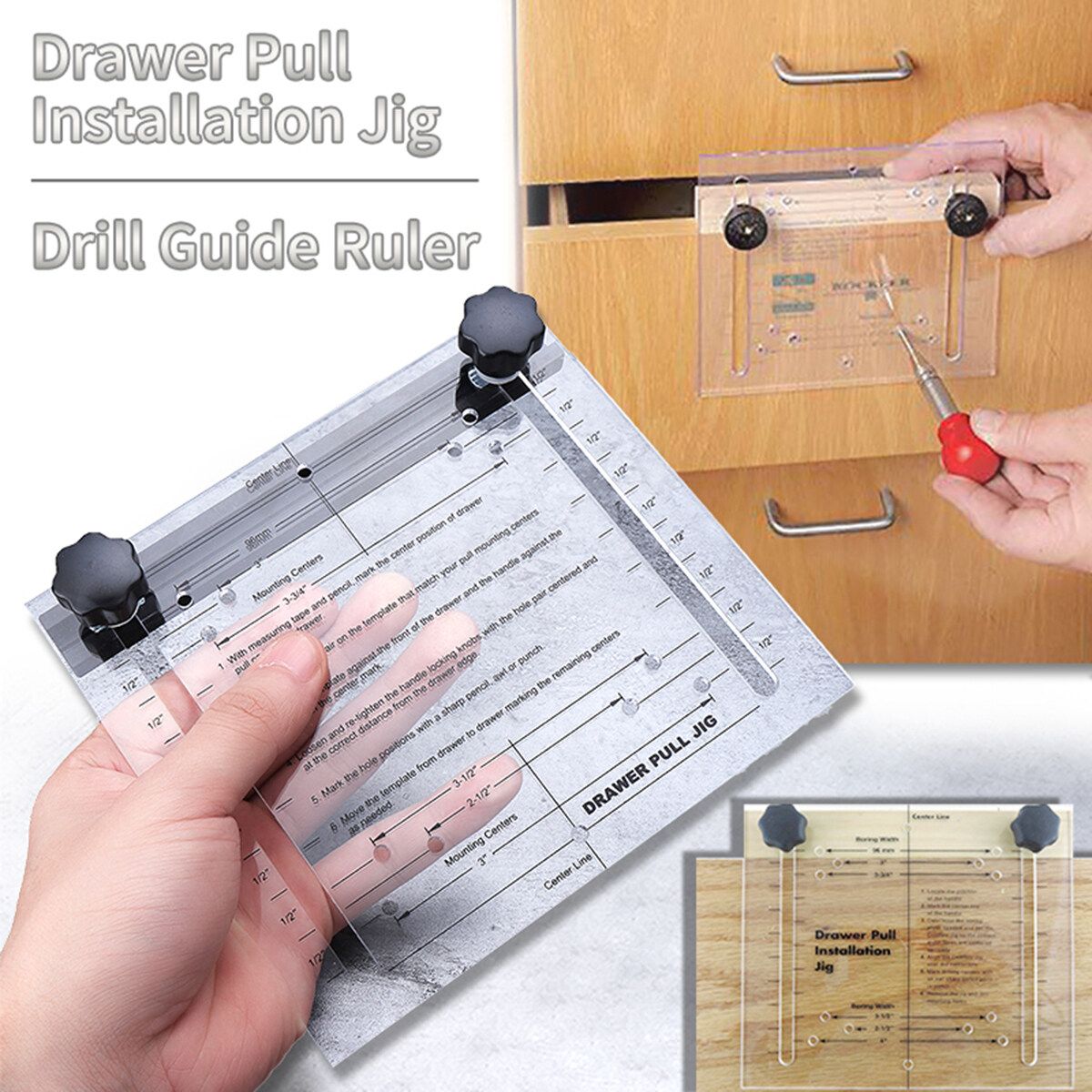 Adjustable Drawer Door Pull Knob Installation Jig Drill Guide Rule