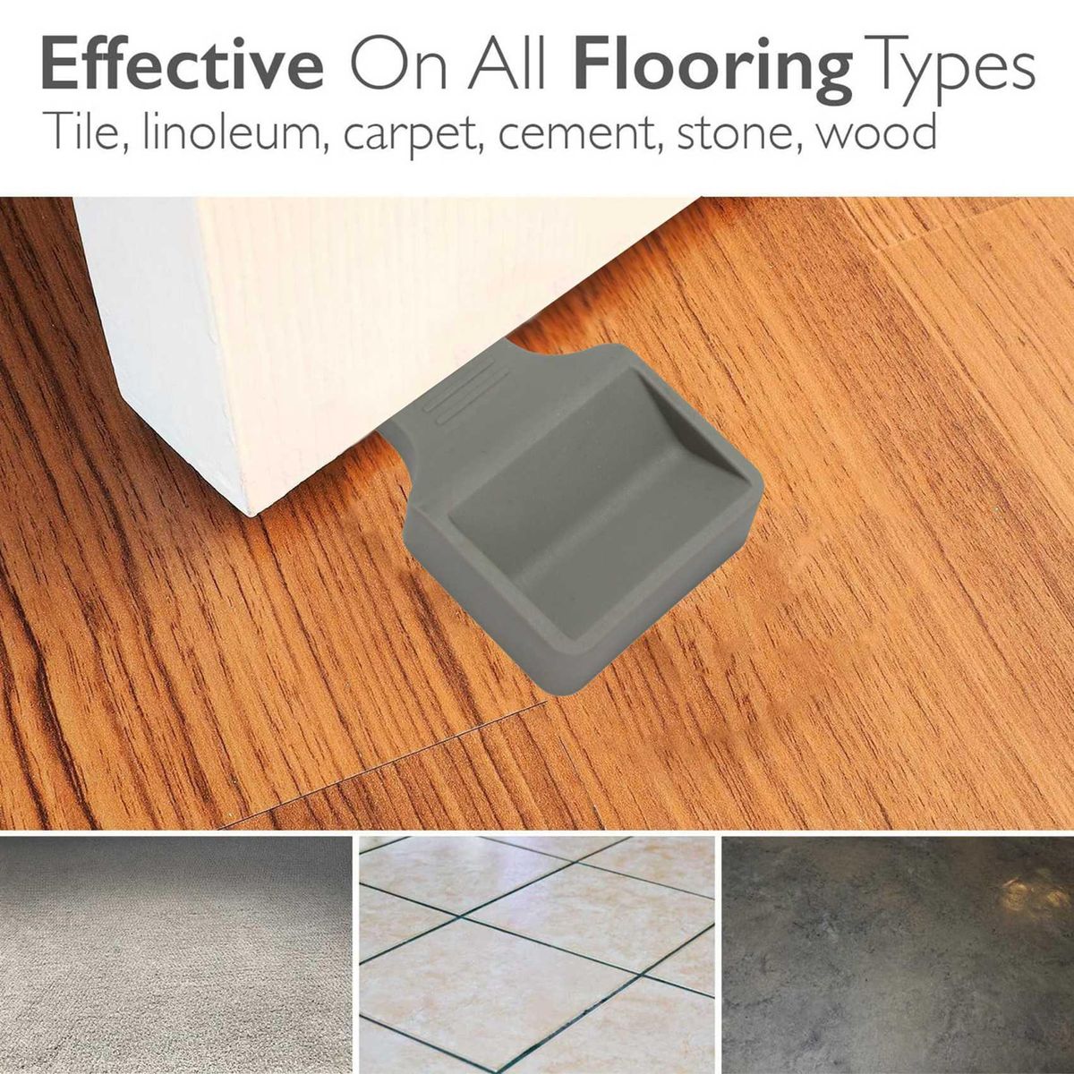 [SAFE AND EFFECTIVE FOR ALL DOORS AND FLOORING] Confidently use the rubber door stopper to prop open any door, on any surface. The stopper will effectively keep open any door on linoleum, tile, stone, wood, carpet, cement, asphalt, and others. Double stack the stoppers for use on doors with higher thresholds.