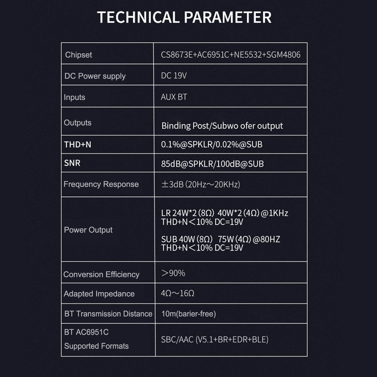 HiFi Digital Amplification: Our amplifier utilizes cutting-edge digital amplification technology to ensure precise and accurate sound reproduction, allowing you to hear every detail in your music.