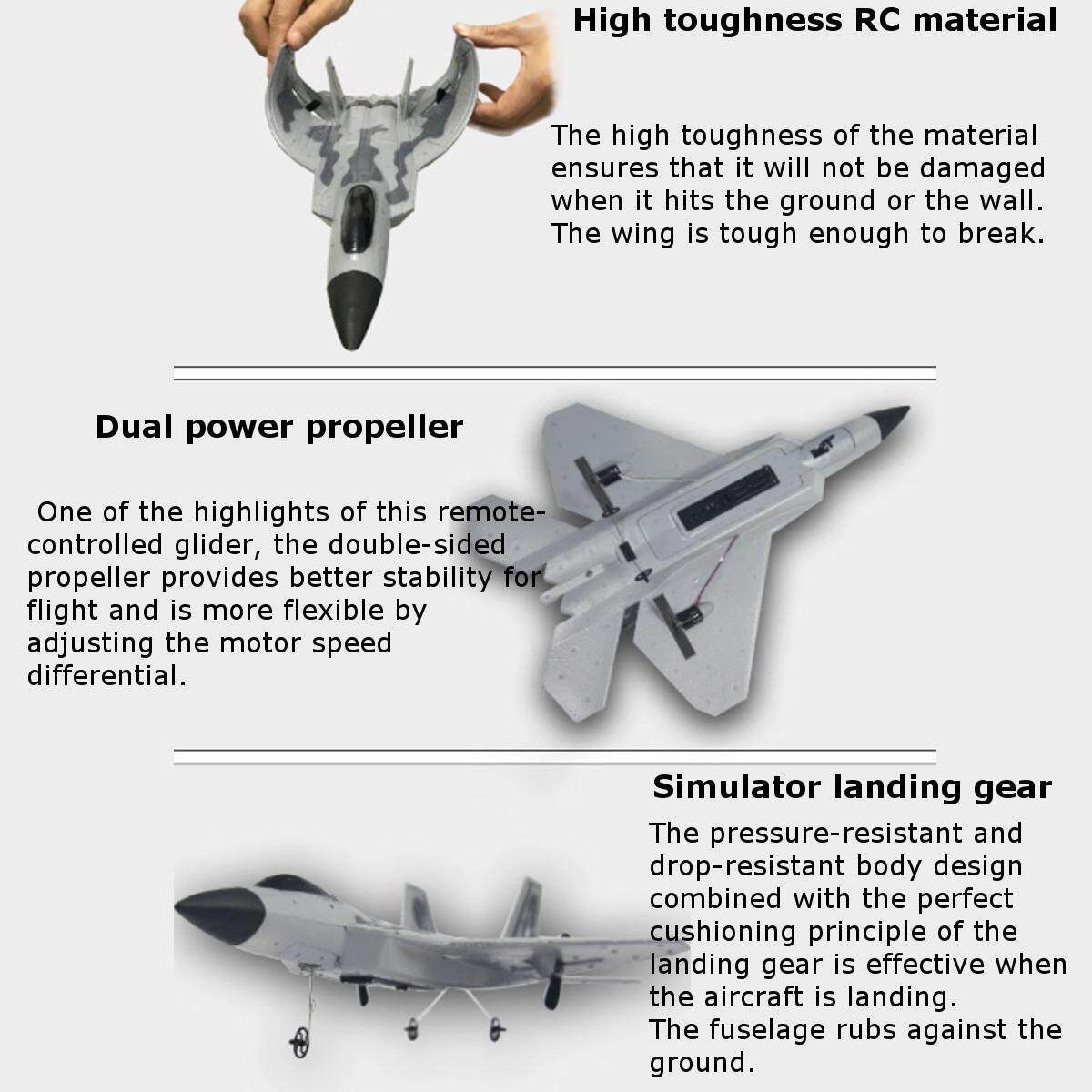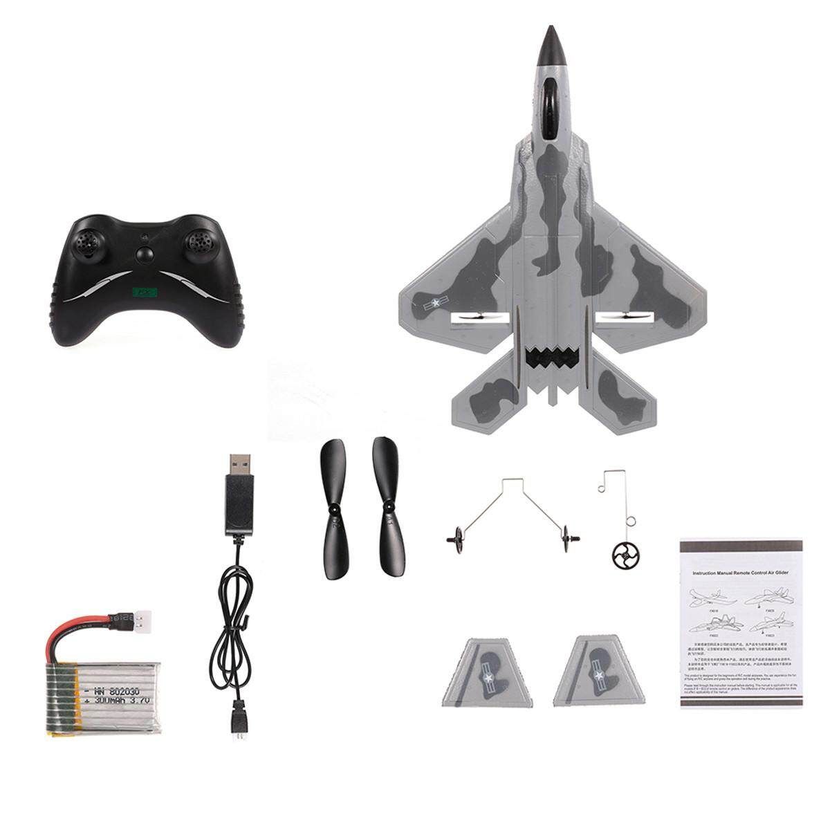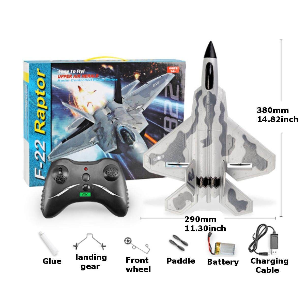 FX822 F-22 Raptor RC Model Fighter Airplane Remote Control Airplane Fixed-wing Model Toy For Kids Gift Collection Specifications: Item type: FX-822 remote control airplane(fighter series) : Material: Plastic : 300mAhLIPO Flight time: 12~15 minutes Charging time: about 35~40 minutes Remote control distance: 120 meters Remote control mode: 2.4GHz frequency remote control Product Size: 390x280x80mm/15.21x10.92x3.12inch Package size: 431x311x80mm/16.80x12.13x3.12inch (1cm=10mm=0.39inch) Measurement Details in the attached picture. Package include: 1x FX-822 remote control airplane 1 set x Accessories 1 x Remote Control 1x English manual Feature: -100% and high quality. -[Body material]: is a very durable material. The fastest advantage of this material is that it is lightweight while sturdy.Odorless, light and resistant to falling. -[High toughness RC material]: The high toughness of the material ensures that it will not be damaged when it hits the ground or the wall. The wing is tough enough to . -[Dual propeller]: One of the highlights of this remote-controlled , the double-sided propeller provides better stability for flight and is more flexible by adjusting the motor speed differential. -[Simulator landing gear]: The -resistant and drop-resistant body design combined with the perfect cushioning principle of the landing gear is effective when the is landing. The fuselage rubs against the ground. Notice -Please allow slight deviation of measurement due to manual measurement. -Due to different monitors and different light, the picture may not reflect the actual of the item. -Please consider the actual sizes in the listing as the pictures are generally enlarged to show detail. Ifyouhaveanyquestions,pleasecontactus.