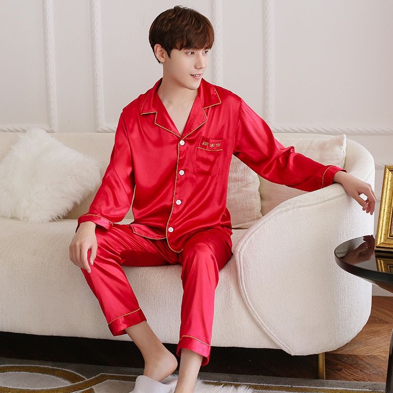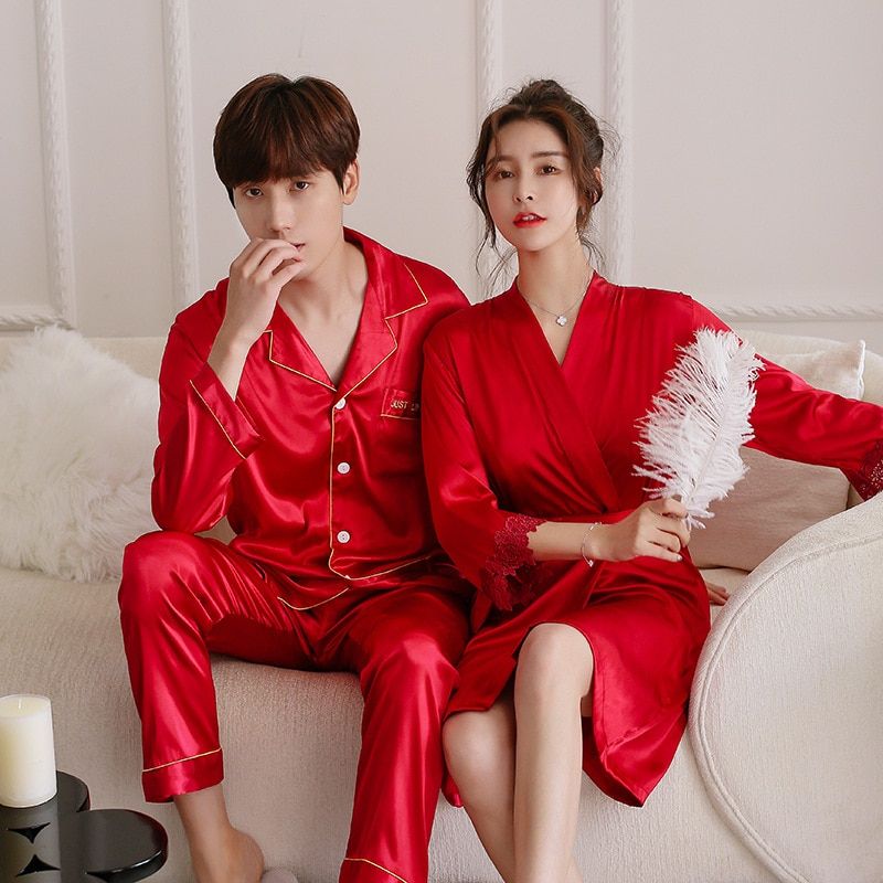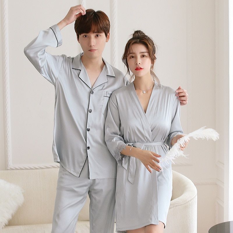 1X FZSLCYIYI Summer New Satin Lovers Pajamas Set Nightwear 2 Pcs Shirt&pant Couple Home Wear Casual Sleepwear M-3XL