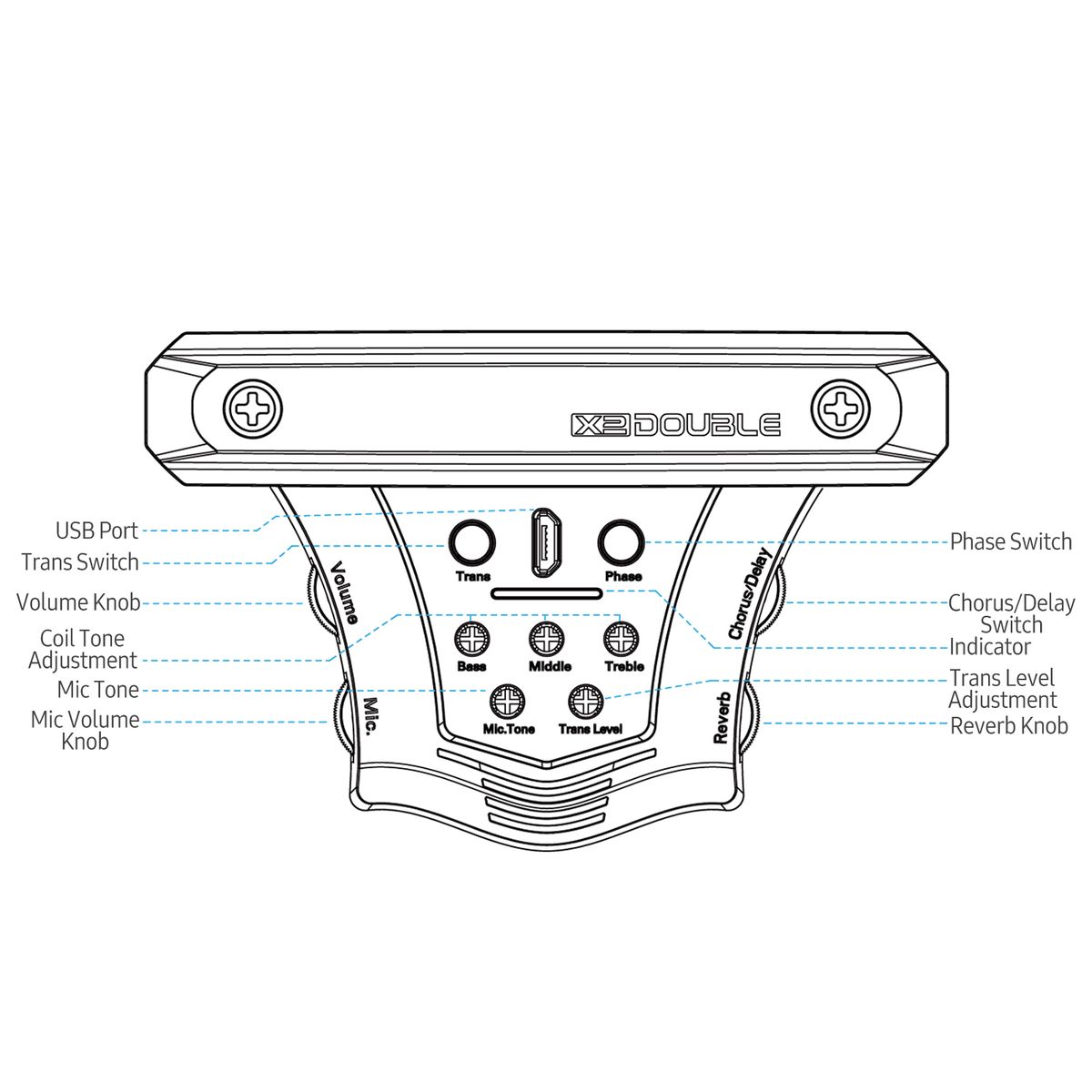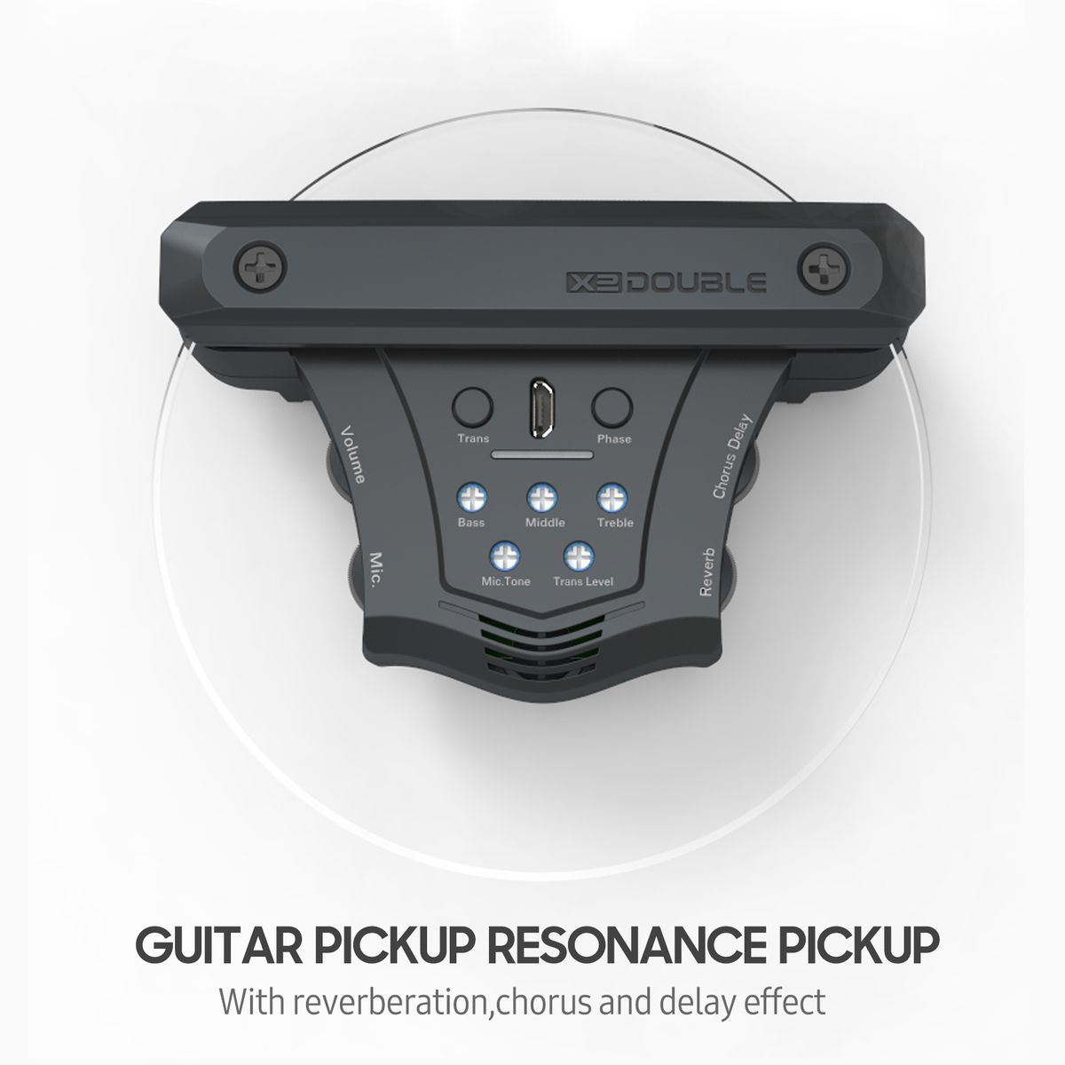 Sound hole vibration pickup with reverberation, chorus and delay effect.