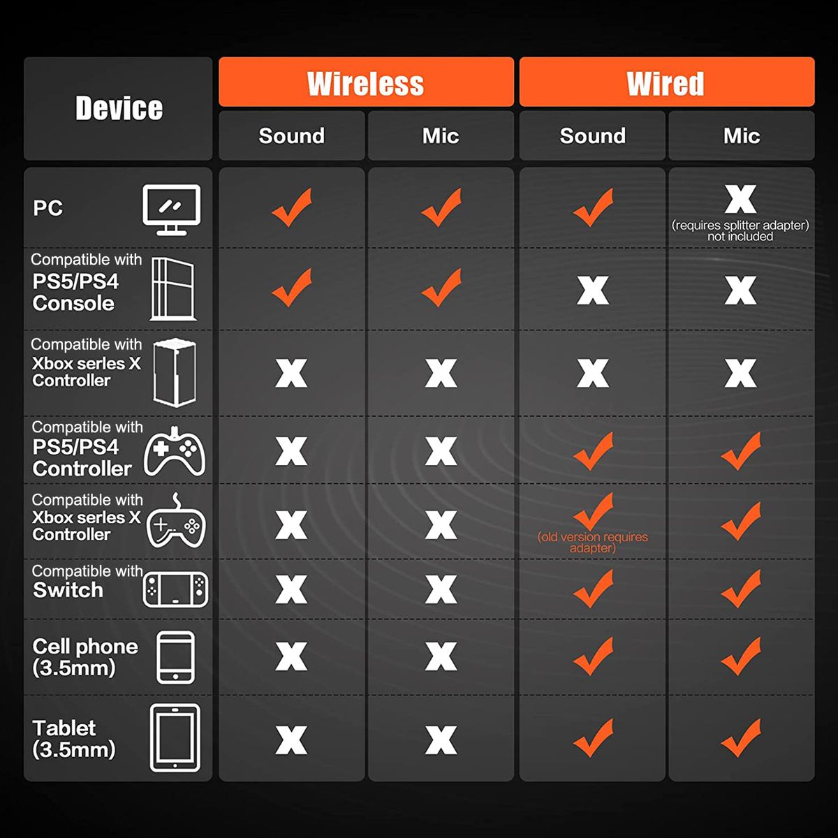 1 x Game Headset,1 x Wireless USB Transmitter,1 x USB Cable,1 x 3.5mm Connection Cable,1 x User Manual (Chinese & English)