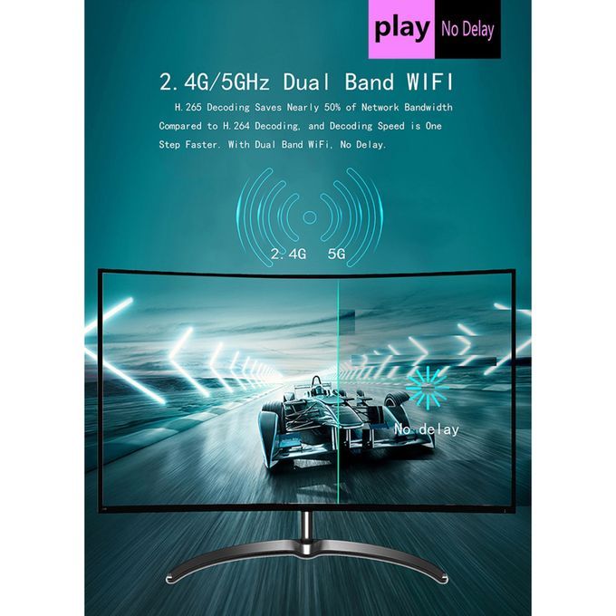2.4G/5GHz Dual Band WiFi Watch video without Unlimited Loading, H.265 Decoding Saves Nearly 50% of Network Compared to H.264 Decoding, and Decoding is One Step Faster. With Dual Band WiFi, No Delay