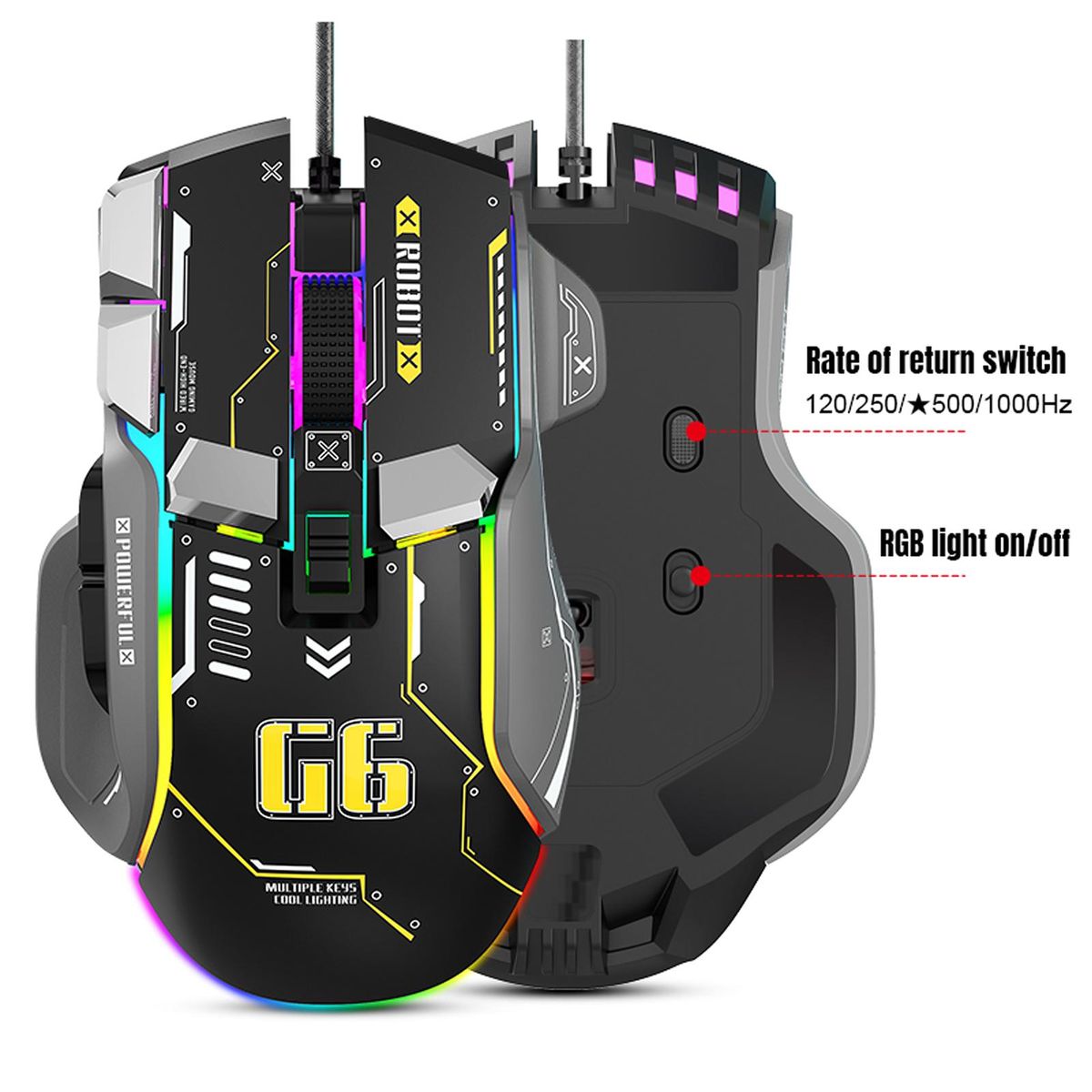 Buy G6 RGB 12-Key Mechanical Mouse Wired Gaming Mosue Ergonomic Design 10-key Macro Programmable Setting 6-Speed Adjustable DPI 13 RGB Lighting Modes in Nigeria