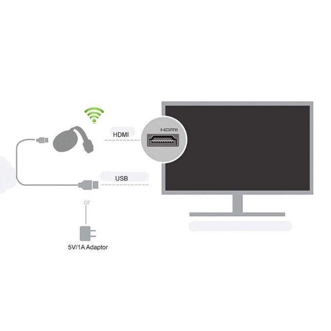 4.Easy to Operate: No application or driver is required. Only by 3 steps can you easily enjoy music, video, photo, office file and website on large screen: Plug->Connect->Mirror. Plug it into TV's HDMI interface and use 5V/500mA power supply, then connect the device by Miracast, Airplay or DLNA mode with Instructions, finally mirror the media on the big screen.