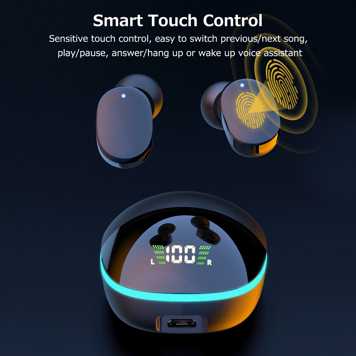 The LED digital display screen shows the battery power digital of the charging case and the power status of the left and right earbuds in real time.