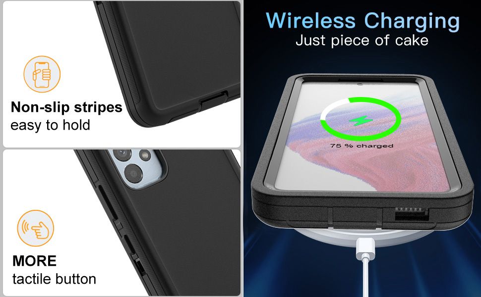 A high-impact polycarbonate shell and synthetic rubber exterior slipcover combine to protect your new Samsung Galaxy A73 5G from wear and tear and random accidents.