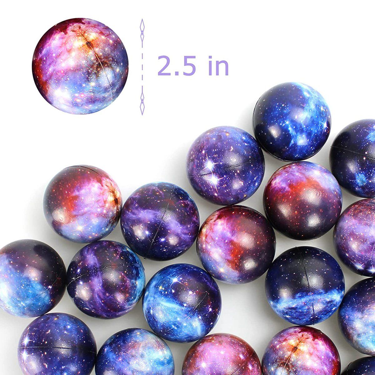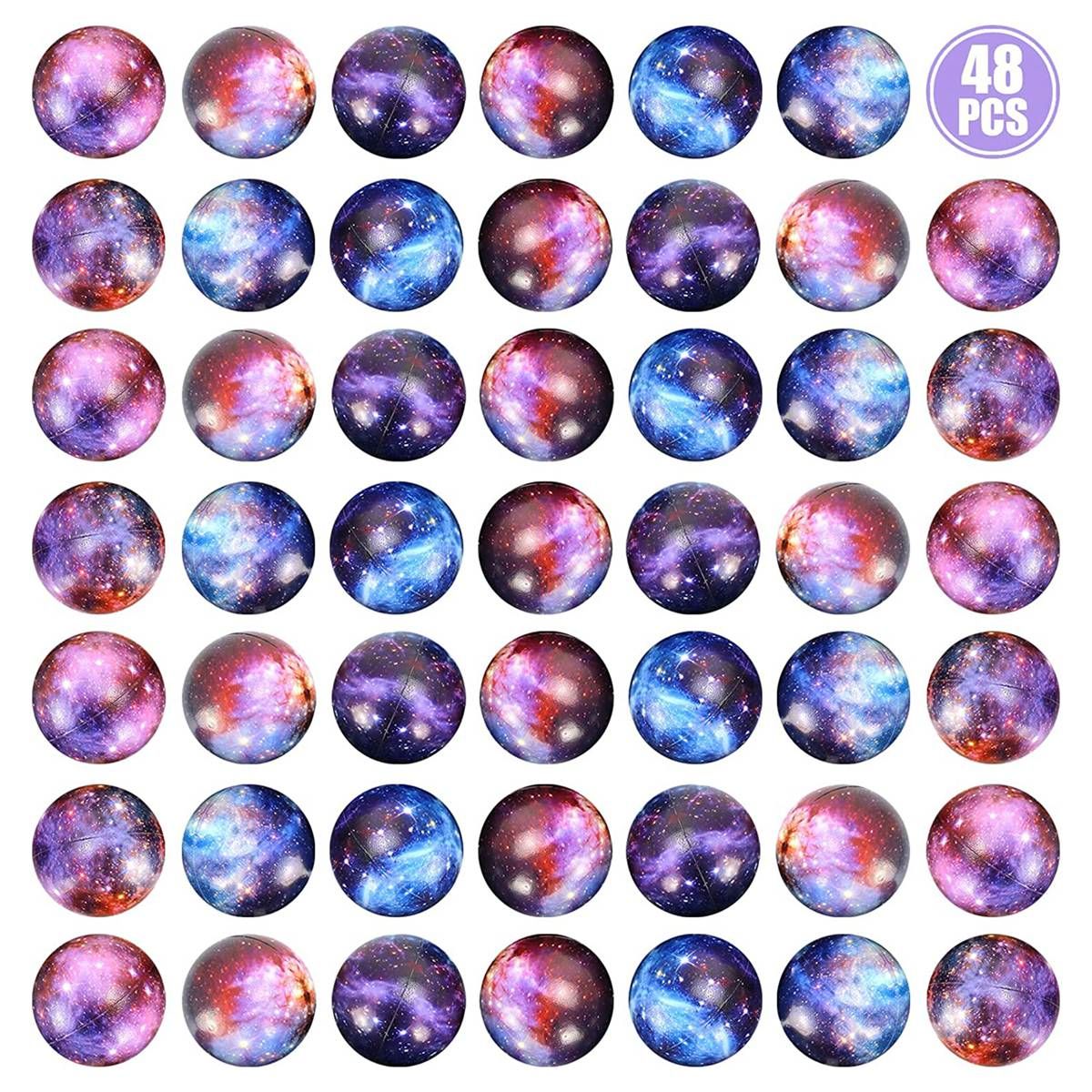 Detailed Information About The Product:48 Pack galaxy stress balls in total.Stress balls are designed with breathtaking outer space staight designs in assorted colors for an out of this wod adventure.