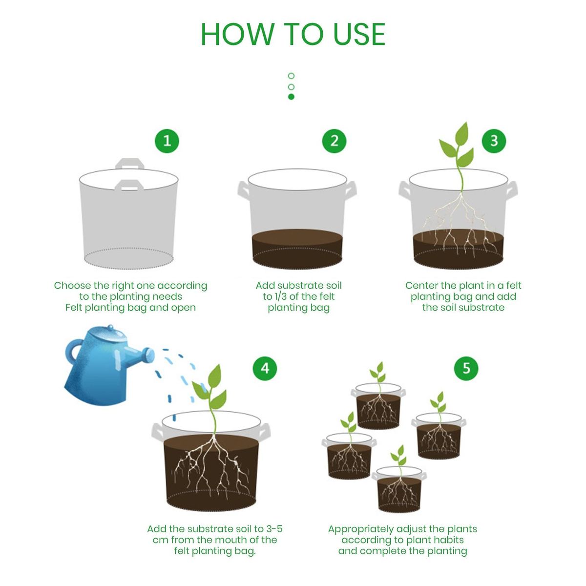 With good air permeability, the planting bag allows a large amount of oxygen to enter the roots and stimulate the differentiation of capillary roots. And can preventfrom accumulating water, without worrying about over watering.