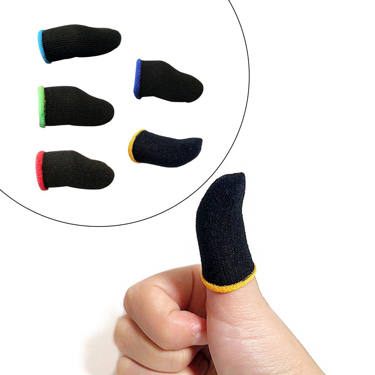 5 PCS Mobile Game Finger Sleeves(Blue Black, Purple Black, Green Black, Yellow Black, Red Black)