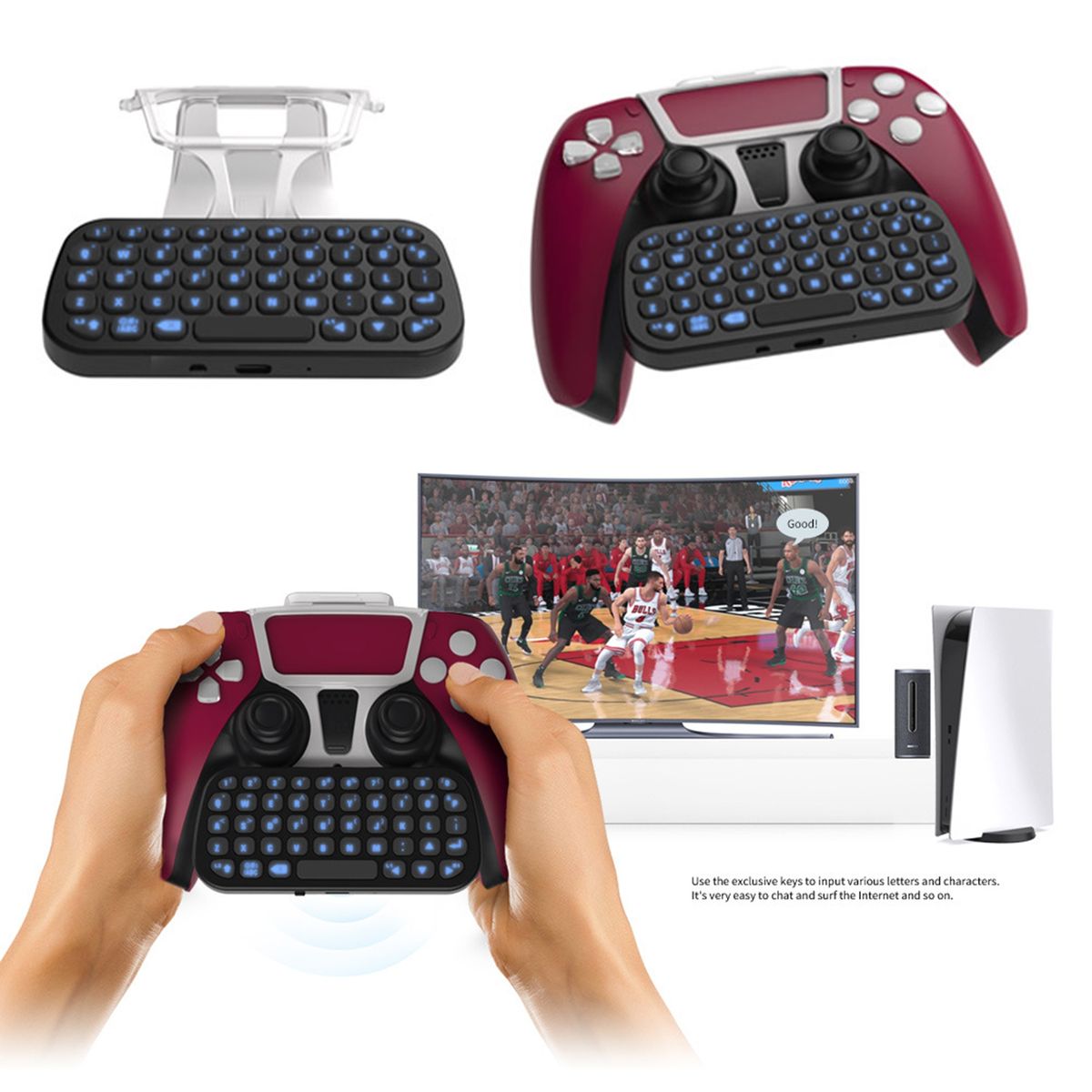 It is perfect for PS5 game consoles. You can press the characters or symbols printed on the keyboard interface to enter the corresponding characters, and the keyboard backlight function can be turned on by combining keys. After the keyboard is paired with for PS5 host, you can directly input characters and common punctuation marks on the keyboard interface.